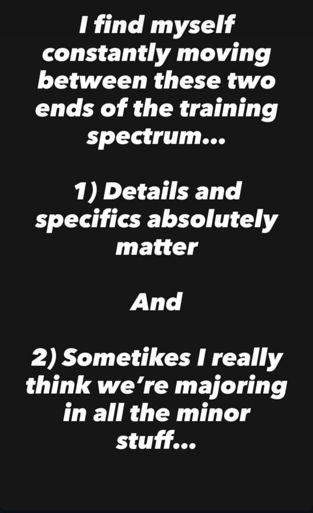 On one hand, we have mobility/movement capacity/”perfect movement”, and on the other, we have just getting in the gym and getting after it.